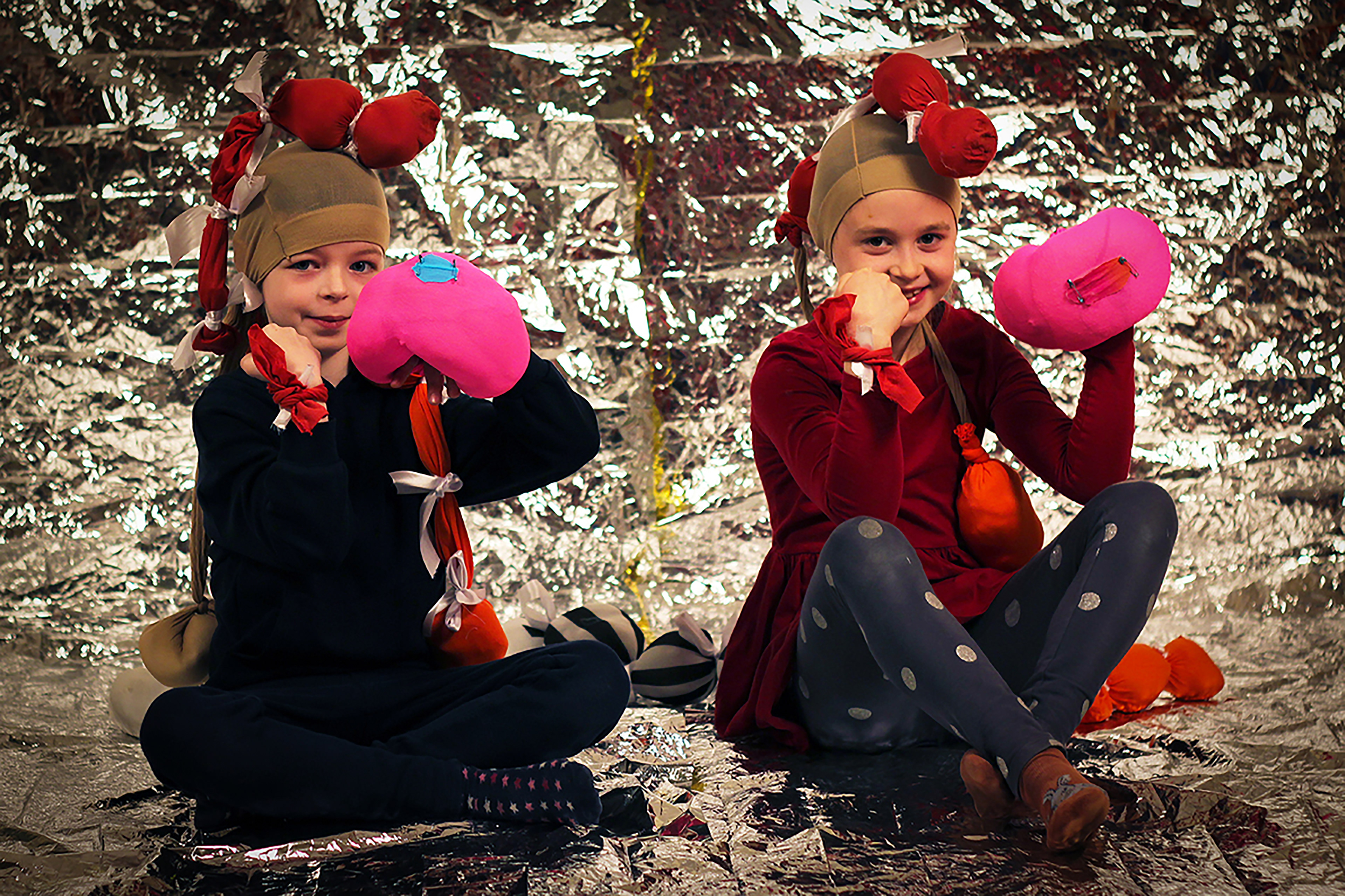 The project "Freunde" is part of TUSCH (Theater und Schulen); a cooperation between Theater o.N. and Grundschule am Rüdesheimer Platz (both in Berlin). Together with theatre pedagogue Julia Vandehof, we developed scenes, movements and costumes with a school class of children aged 6-8, à la Bouffon and inspired by the book "Friends" by Mies van Hout.